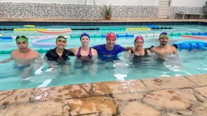 No segundo momento, Marcos reuniu o time na piscina para vivenciarem na prática a nova estrutura de aula e seus blocos, a dinâmica de aula e abordando diferentes níveis de aprendizado desde iniciantes até técnicas avançadas.