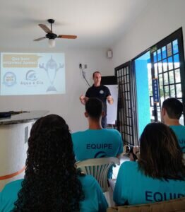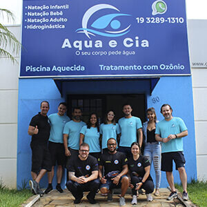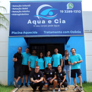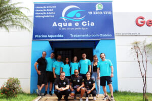 Junto ao time da Aqua e Cia, os sócios proprietários Adriano Rossi e Thomas Tolle participaram do primeiro treinamento de implantação. Que contou também com uma parte da equipe Swim & Health, Marcos Ruivo, idealizador da metodologia e os gestores Rafael Zucco, Luan Delmiro e Erika Mont’Alvão.