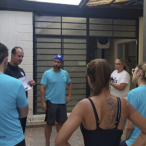 Adriano Rossi deu início ao treinamento apresentando o idealizador da metodologia Marcos Ruivo ao time e compartilhando sua experiência com a Swim & Health Natação Positiva. Agradecendo também a presença do time de professores da Aqua e Cia.