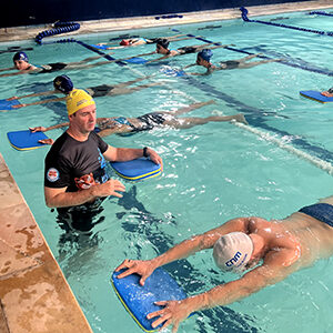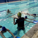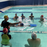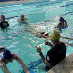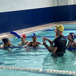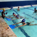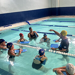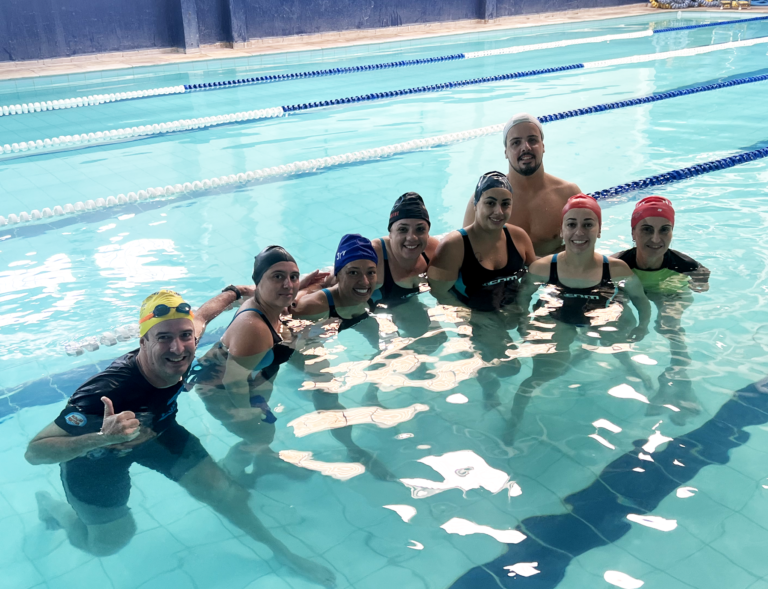 O treinamento incluiu uma parte teórica sobre a estrutura e dinâmica de aula e uma prática na piscina, abordando diferentes níveis de aprendizado, desde iniciantes até técnicas avançadas.