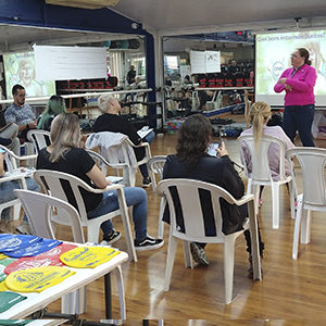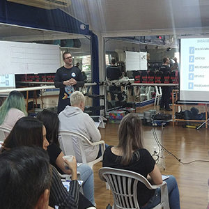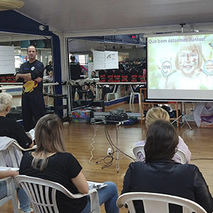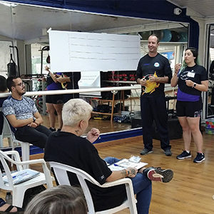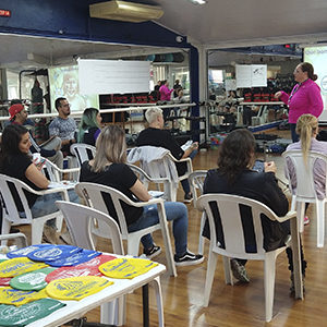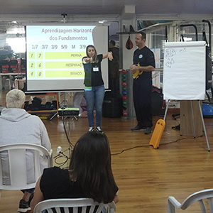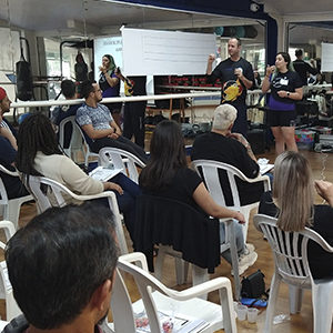 Caroline deu início ao treinamento agradecendo a presença de todos os colaboradores da CNM Acqua Fitness.