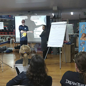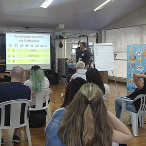 Na primeira parte do treinamento, Marcos Ruivo, criador do método, apresentou as ideias e os diferenciais que fazem o método ser referência na boa performance técnica na natação formativa e na educação positiva que está associada ao processo de ensino.