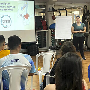 Juliana Lovato e Leandro Sass, proprietários da CNM, participaram do treinamento junto ao time. Onde estavam presentes também, Marcos Ruivo, idealizador do método e os gestores Rafael Zucco, Erika Mont’Alvão que compõem o time Swim & Health Natação Positiva.