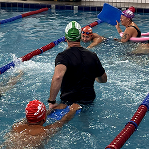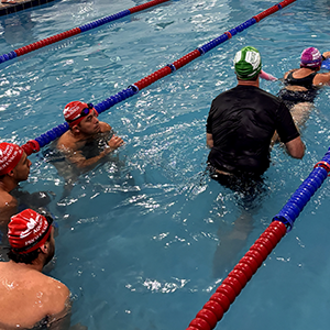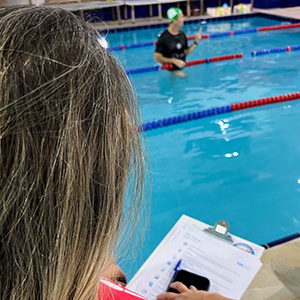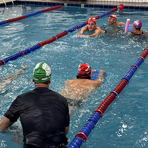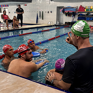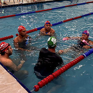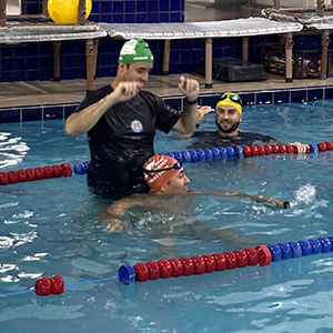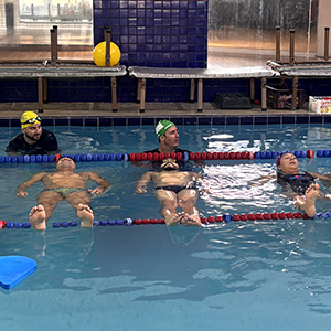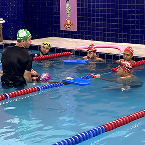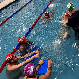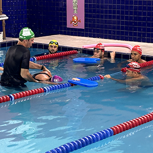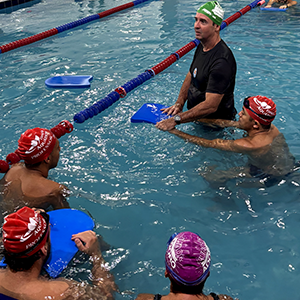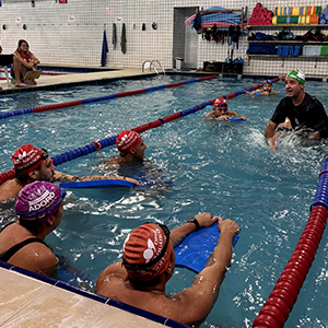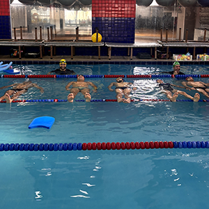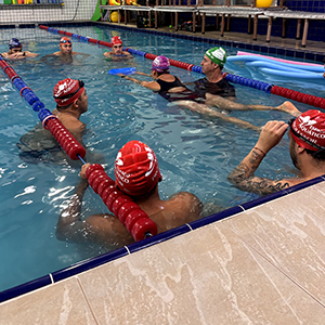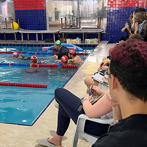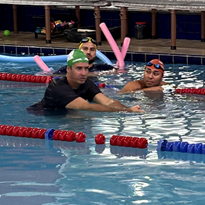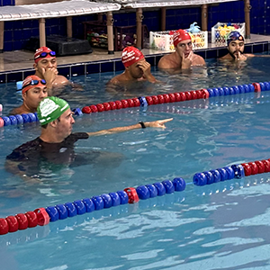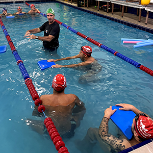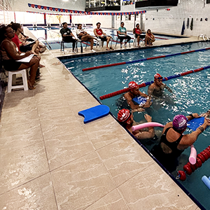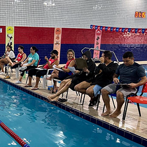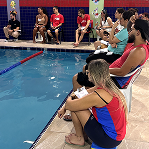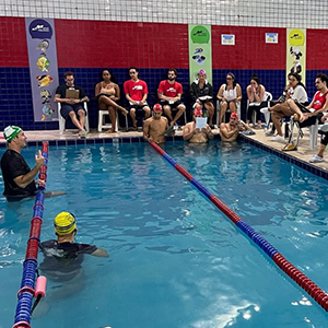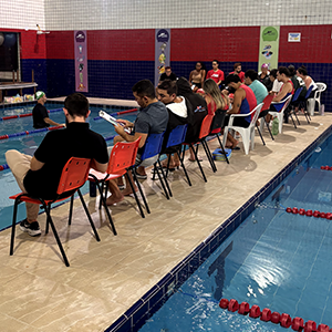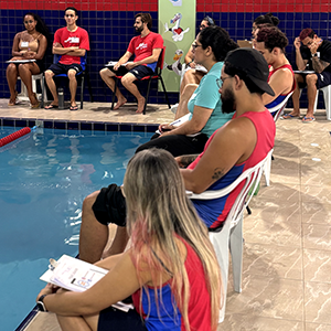 Após a teoria, o time de professores se reuniu na piscina para iniciar a prática.