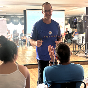 Finalizando o treinamento de atualização, Marcos aplicou os fundamentos da Psicologia Positiva e realizou a devolutiva dos relatórios VIA para os colaboradores da Espaço Aquático Osasco.