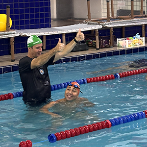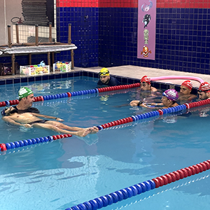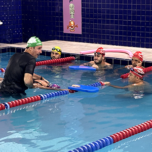 Realizou a dinâmica de troca de fase, simulando com os professores a comemoração na piscina e reforço com o aluno.