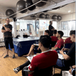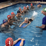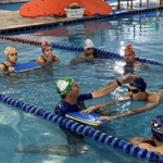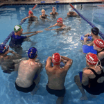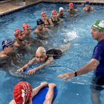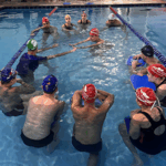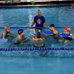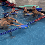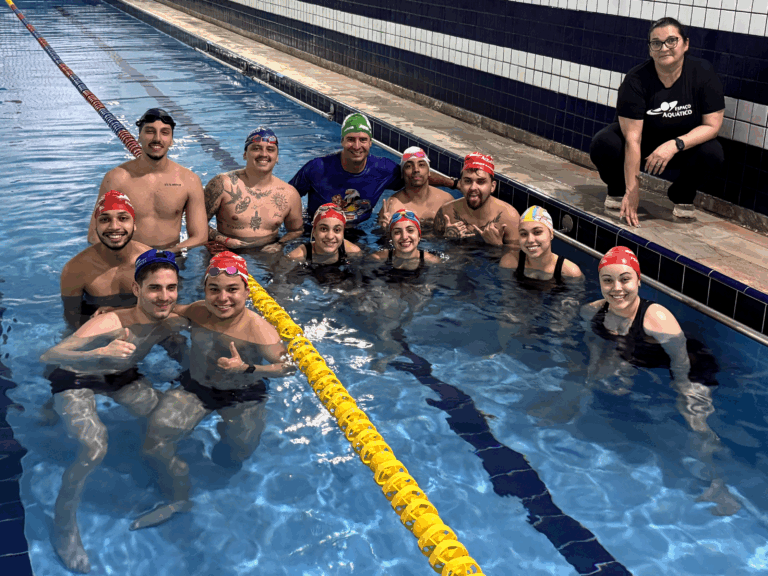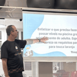 No segundo momento do treinamento, Marcos e o time de professores seguiram para a prática na piscina abordando diferentes níveis de aprendizado, desde iniciantes até técnicas mais avançadas. Simularam na prática as aulas com a estrutura de aula, suas variações e reforçaram os fundamentos de aprendizagem, que é um dos principais diferenciais do método.