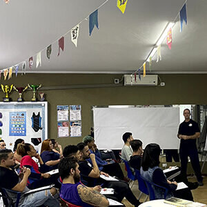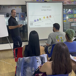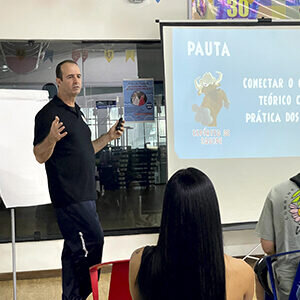 Marcos Ruivo iniciou a reunião apresentando a pauta do treinamento, entre elas o alinhamento da ideia de longo prazo, conceitos do reforço positivo x condicionamento clássico e estrutura de aula.