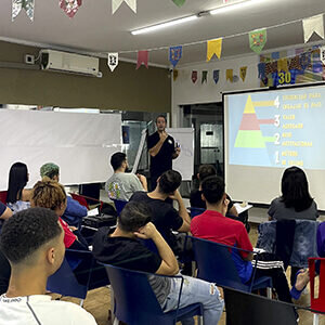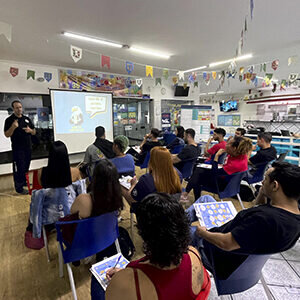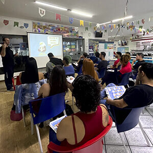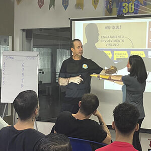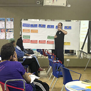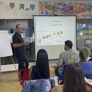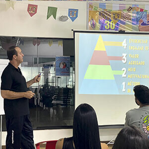 Para finalizar o treinamento, o aprofundamento foi no VIA, que é o estudo das Virtudes e Forças associado ao planejamento temático como oportunidade de educação positiva para alunos, familiares e colaboradores.