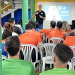 No primeiro momento do treinamento, Marcos Ruivo, criador do método, apresentou as ideias e os diferenciais que fazem o método ser referência na boa performance técnica na natação formativa e na educação positiva que está associada ao processo de ensino.