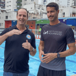 Kadu Lins, proprietário do Instituto do Movimento e Instituto do Autismo, também esteve presente no início do treinamento desejando boas-vindas à Natação Positiva.