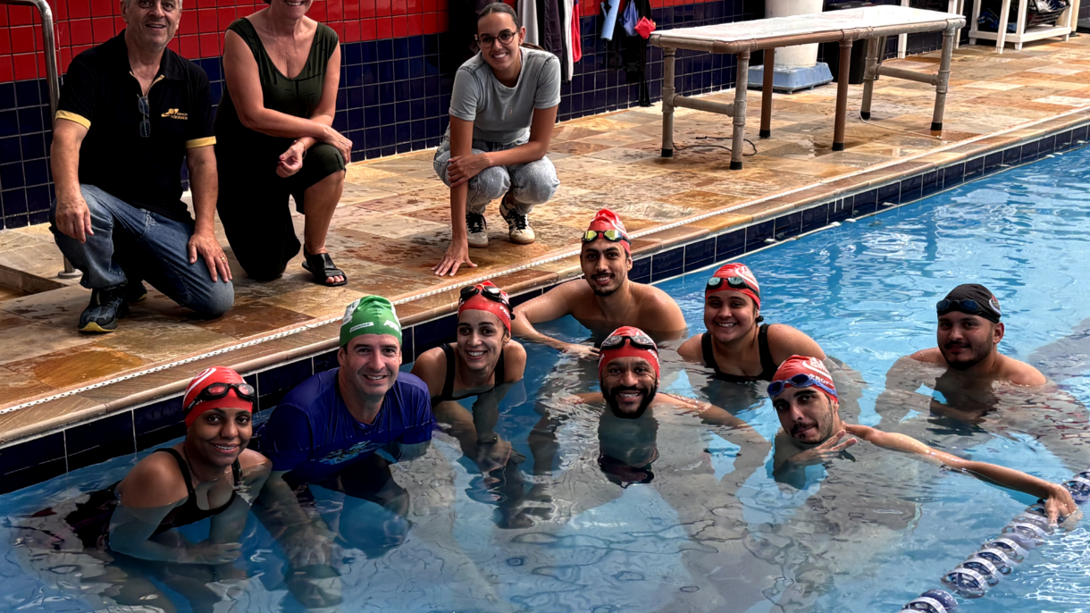 Representado por Marcos Ruivo e pelos gestores Rafael e Erika, o time da Swim & Health esteve em Perdizes, na Zona Oeste de São Paulo, onde está localizada a NHD Sport Center.
