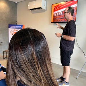 Enquanto isso na recepção, reforçamos com o time de consultoras de vendas os principais processos que sustentam a gestão do relacionamento com o cliente e os processos que permitem a equipe individualizar cada aluno em relação a sua evolução de aprendizagem.