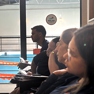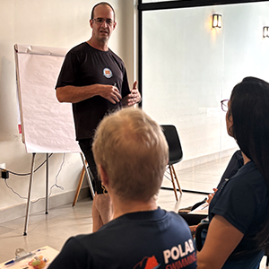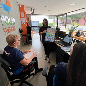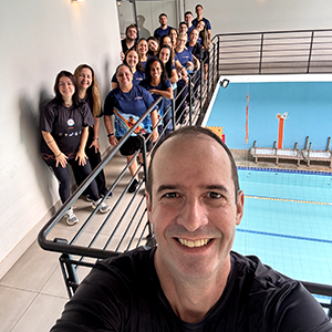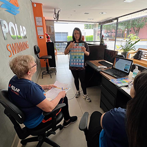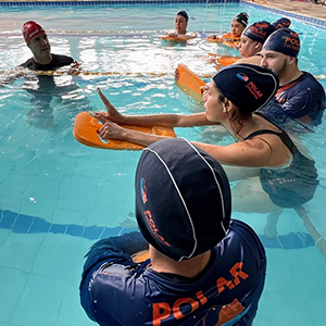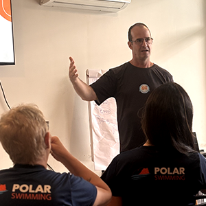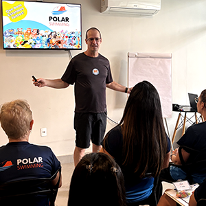 Na parte final do treinamento de atualização, Marcos demonstrou e praticou junto ao time de professores da Polar, os educativos estratégicos dos nados avançados.