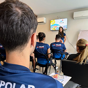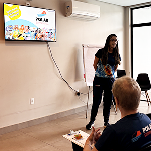Gabriela abriu o treinamento agradecendo a presença do time da Polar, e aproveitou o encontro para apresentar nosso time e a metodologia aos novos colaboradores.