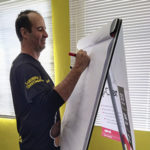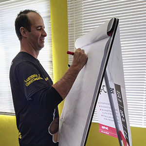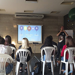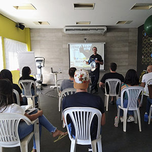 Marcos reuniu a equipe aquática e a equipe de vendas para iniciar o treinamento. Abordou o tema Educação Positiva, um dos diferenciais do método, baseada nas Forças de Caráter.