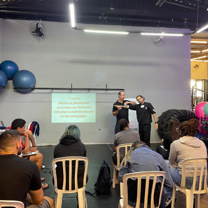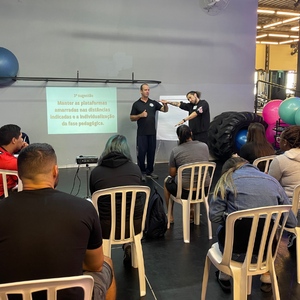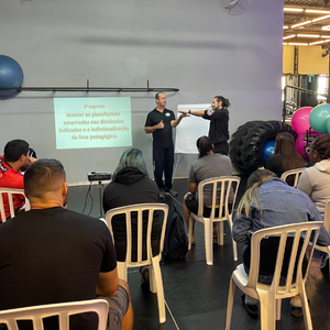 Marcos Ruivo iniciou a reunião apresentando a pauta do treinamento, entre elas o alinhamento da ideia de longo prazo, conceitos do reforço positivo x condicionamento clássico e estrutura de aula.